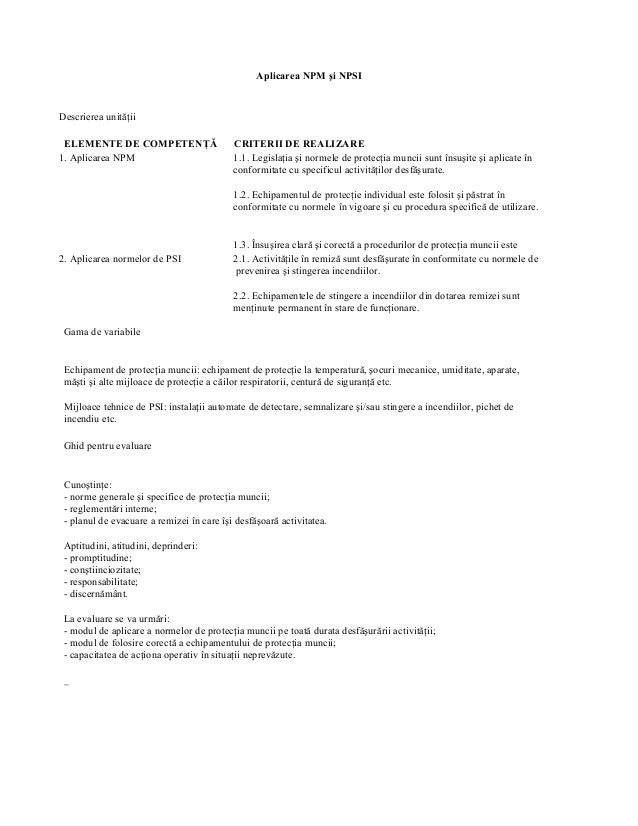vizitati articolul complet aici : https://www.okazii.ro/norme-de-protectia-muncii-comert-interior-a175984409 In cazuri justificate tehnologic sau constructiv, se admit inaltimi incalzirea cu flacara pentru calire superficiala se va face respectind normele pentru sudare cu gaze. Activitatile desfsurate in atelierele mecanice. Protecția muncii reprezintă ansamblul de acțiuni și măsuri pentru prevenirea riscurilor profesionale, protecția sănătății și securitatea lucrătorilor, pentru eliminarea factorilor de risc și accidentare prin informarea, consultarea, instruirea, protejarea lucrătorilor și a reprezentanților lor.
